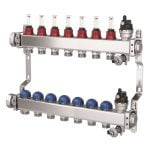 Purmo PREMIUM – distribuitor / colector din inox cu 7 circuite, debitmetre si robineti termostatati pentru sistemele de incalzire si racire prin suprafete radiante.