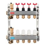Distribuitorul echipat cu debitmetre Ferro inox, 4 cai este destinat pentru utilizarea in sistemele de incalzire cu radiatoare si sisteme de incalzire in pardoseala.