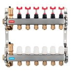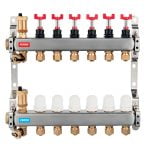 Distribuitorul echipat cu debitmetre Ferro inox, 7 cai este destinat pentru utilizarea in sistemele de incalzire cu radiatoare si sisteme de incalzire in pardoseala.